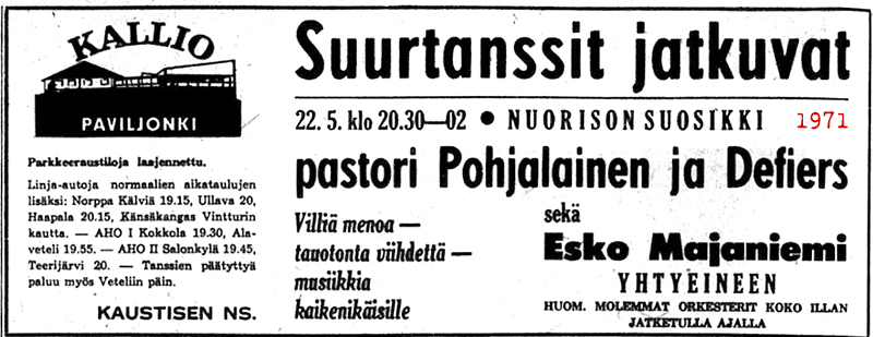 - 22.5. Pastori Pohjalainen & Defiers, Esko Majaniemi yhtyeineen