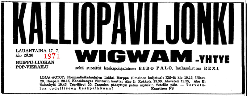 - 17.7. Wigwam, Eero Palo solistina Rexi