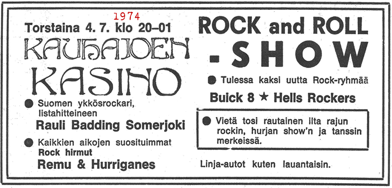 - 7.8. Markkinat: Petri Ritari yhtyeineen, Karkelos solistinaan Erkki Kivelä