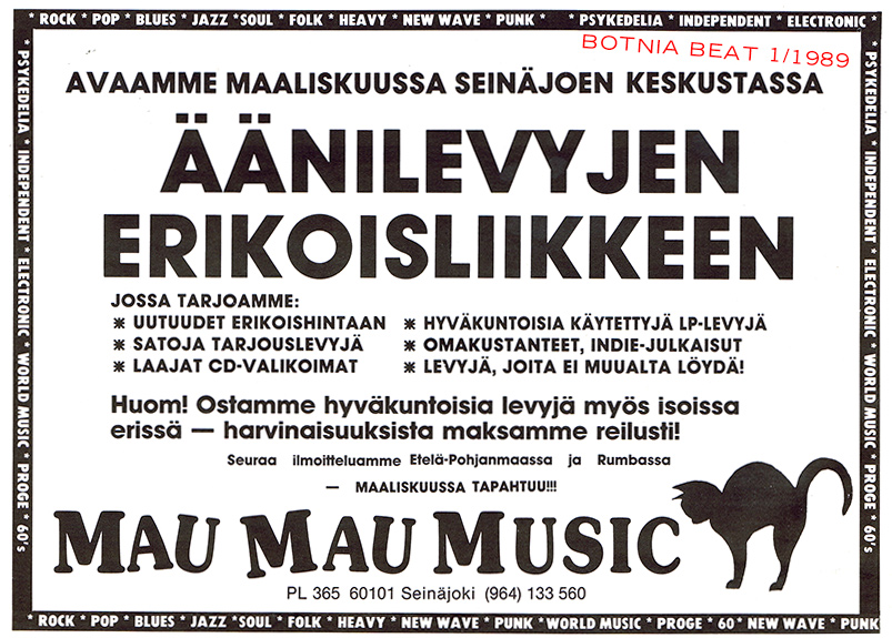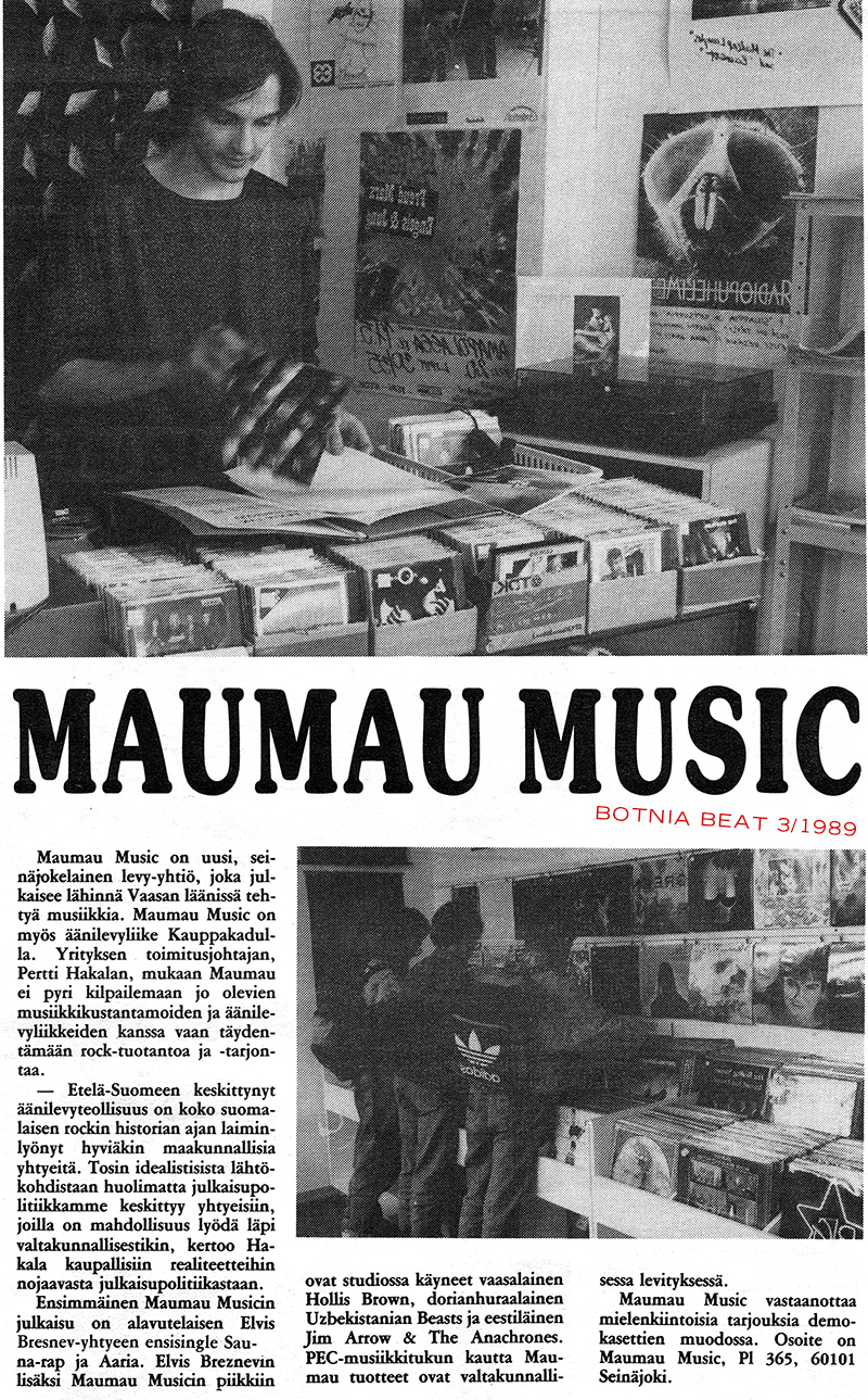 Kun useimmissa liikkeissä myydään musiikkia kuin "halpaa makkaraa" on tyyli seinäjokelaisessa MauMau Musicissa hieman toinen. Likimain vuoden verran "äänilevytarjontaa" Pohjanmaalla monipuolistanut yritys nimittäin sisällyttää toiminta-ajatukseensa vaihtoehtoisuuden. Eli kuten MauMaun idealistinen johtaja Pertti Hakala sanoo: