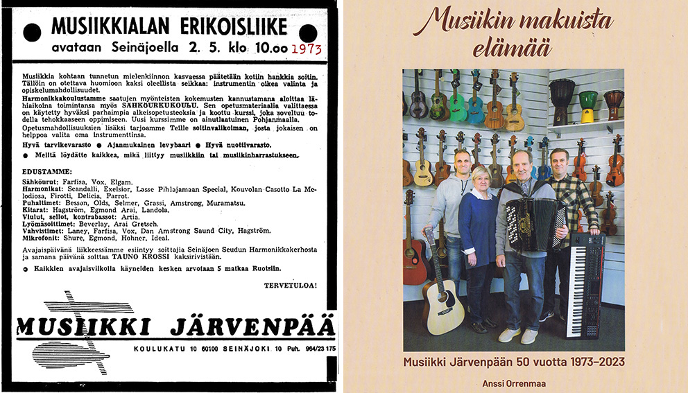 Monipuolinen musiikkiliike Musiikki Järvenpää on ollut reilu 50 vuotta näkyvä osa Seinäjoen musiikkielämää ja keskustan katukuvaa.